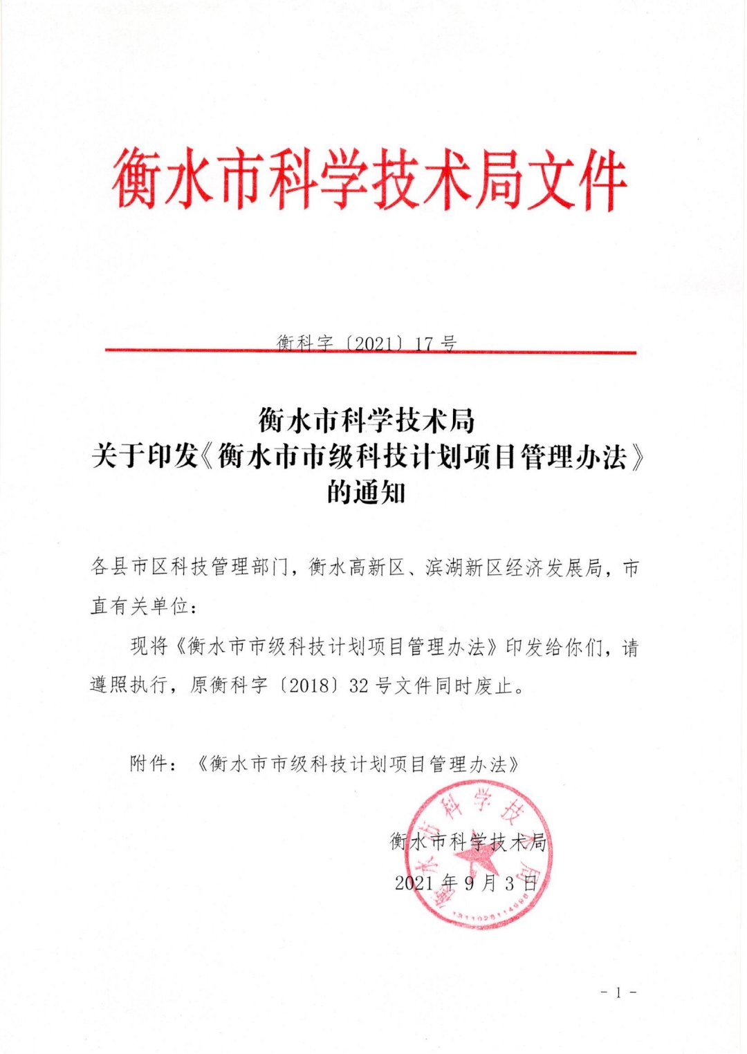 【衡水】关于印发《衡水市市级科技计划项目管理办法》的通知